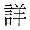 《唐韻》似羊切《集韻》《韻會》《正韻》徐羊切,𠀤音翔。《說文》審議也。《玉篇》審也,論也,諟也。《增韻》語備也。《書·蔡仲之命》詳乃視聽。《傳》審也。《詩·衞風》中冓之言,不可詳也。《傳》詳言之也。《穀梁傳·襄二十九年》詳其事,賢伯姬也。《史記·封禪書》其詳不可得而記聞。《前漢·儒林傳》詳延天下方聞之士。《註》詳,悉也。