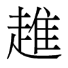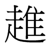 趡【酉集中】【走部】 康熙筆画:15画,部外筆画:8画