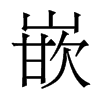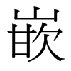 (4) 险峻 。如:嵌巉(形容山崖险峻);嵌根(崖岸底部)