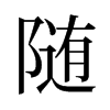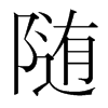 〔古文〕𨼕遀追《廣韻》《集韻》《韻會》𠀤旬爲切,音隋。《廣韻》從也,順也。《書·禹貢》隨山刊木。《易·𢁉象》隨風巽,君子以申命行事。《詩·大雅》無縱詭隨。《傳》詭,人之善。隨,人之惡者。