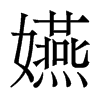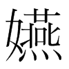 (嬿)女字也。毛詩。燕婉之求。傳曰。燕、安。婉、順也。韓詩作嬿婉。嬿婉、好皃。見西京賦注。从女。燕聲。于甸切。十四部。