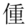 偅【子集中】【人部】 康熙筆画:11画,部外筆画:9画