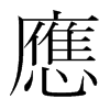 《廣韻》《集韻》《韻會》《正韻》𠀤於陵切,音膺。《說文》當也。从心𤸰聲。《徐曰》𤸰,鷹字也。本作𤻮,今作應。