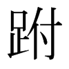 《廣韻》甫無切《集韻》《韻會》風無切,𠀤音膚。足趾也。《玉篇》足上也。《儀禮·士喪禮》乃屨綦結于跗連絇。《註》跗,足上也。《疏》謂足背也。《莊子·秋水篇》蹶泥則沒足滅跗。《音義》跗,足跗也。