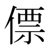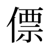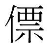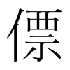 《集韻》《韻會》《正韻》𠀤匹妙切,音剽。《說文》輕也。《玉篇》僄狡,輕迫也。《廣韻》身輕便也。《荀子·修身篇》怠慢僄棄,則炤之以禍災。