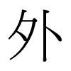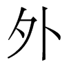(1) (会意。从夕,从卜。通常在白天占卜,如在夜里占卜,表明边疆(外)有事。又有人说,因为要在外过夜,故要卜问吉凶。本义:外面;外部)