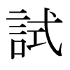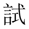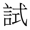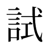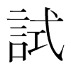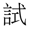 《唐韻》《集韻》《韻會》𠀤式吏切,詩去聲。《說文》用也。《博雅》嘗也。《增韻》探也,較也。《易·无妄》无妄之藥,不可試也。《釋文》試驗,一曰用也。《註》試,謂少嘗之也。《書·舜典》明試以功。《禮·緇衣》𠛬不試而民咸服。《莊子·齊物論》嘗試言之。