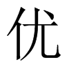 《篇海類編》于求切,音尤。五穀精,如人髮白也。(優)《唐韻》《集韻》《韻會》於求切《正韻》於尤切,𠀤音憂。《爾雅·釋訓》優優,和也。《詩·商頌》敷政優優。言人君德政和樂也。