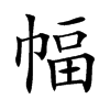 )声。从“巾”表示与布帛有关。声符“畐”训“满”(参“福”字条),在字中亦兼有表义作用。布帛的宽度(广)与“满”有相通之处,故可以引申。本义: 布帛的宽度)(2) 同本义。古制一幅为二尺二寸。今为布帛、呢绒等宽度的通称