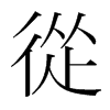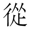 《廣韻》疾容切《集韻》《韻會》《正韻》牆容切,𠀤俗平聲。《說文》本作从。相聽也。《書·益稷》汝無面從。《說命》后從諫則聖。