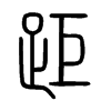 (8) 蹲,踞 。如:距石(踞坐石上)