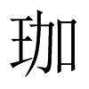 《唐韻》古牙切。《韻會》《正韻》居牙切,𠀤音嘉。《說文》婦人首飾。《詩·鄘風》副笄六珈。《傳》珈笄,飾之最盛者,所以別尊𤰞。箋:副笄旣笄而加飾也,如今步搖上飾。錢氏曰:今人步搖加飾,以珠飾之。小者六,多者倍蓰至三十六。詩六珈,然則古玉數凡六也。孔氏曰:王后之衡笄,皆以玉爲之,垂於副之兩旁,當耳,其下以紞縣瑱,謂之珈者由副旣笄而加此飾,故謂之珈。《古器圖》珈,加於副之飾也。狀如口,長廣僅寸。