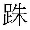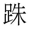 《廣韻》陟輸切《集韻》《韻會》追輸切,𠀤音株。《玉篇》行貌。《左傳·昭二十五年》鸜鵒跦跦。《註》跳行貌。