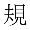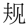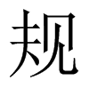 又《音學五書》居何切,古音歌。《淮南子·主術訓》若(缺一欲字)規之,乃是離之。《揚子·法言》問蕭何、曹參,曰:蕭也規,曹也隨。《說文》从夫从見。《字統》丈夫識用必合規矩,故字从夫。《正字通》按因夫立解未詳,考䂓與矩𠀤从矢也。當作䂓。古文作槼。