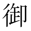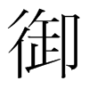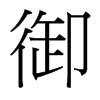 〔古文〕𢓷𢕜《唐韻》《集韻》《類篇》牛據切《韻會》《正韻》魚據切,𠀤音禦。《說文》使馬也。《徐鍇曰》卸解車馬也。从彳从卸,皆御者之職。《詩·小雅》徒御不驚。