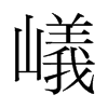 《玉篇》宜崎切《集韻》魚羈切,𠀤音儀。《玉篇》山名。《集韻》山峰巉巖也。本作㕒。或作嶬。《王延壽·魯靈光殿賦》上崎嶬而重注。《註》崎嶬,高峻也。