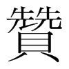 《唐韻》《集韻》《韻會》𠀤則旰切,音讚。《說文》見也。从貝从兟。《註》徐鉉曰:兟,音詵,進也。執贄而進,有司贊相之。