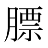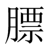 《廣韻》敷沼切《集韻》《韻會》匹沼切《正韻》普沼切,𠀤音縹。《說文》牛脅後髀,前合革肉也。《徐曰》按詩傳:下殺射中膘。今謂馬肥爲膘肥也,言最薄處合革肉,言皮肉相合也。《廣韻》脅前。《正韻》牛脅後髀之前連膚肉。