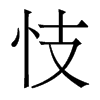 《唐韻》《集韻》《韻會》《正韻》𠀤支義切,音寘。《說文》很也。从心支聲。一曰懻忮,强害也。《詩·邶風》不忮不求。《莊子·齊物論》大勇不忮。
