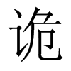 又通作恑。《陸機·辯亡論》古今詭趣。《註》詭,變也。同恑。《集韻》或作謉、譌。《正韻》亦作佹、傀。