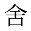 又《集韻》《韻會》《正韻》𠀤始野切,音捨。止息也,廢也,置也。《論語》不舍晝夜。《書·湯誓》舍我穡事,而割正夏。《釋文》舍,音捨,廢也。《左傳·昭四年》使杜洩舍路。《註》舍,置也。《釋文》舍,音捨。
