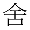 《廣韻》始夜切《集韻》《韻會》《正韻》式夜切,𠀤音赦。《說文》市居曰舍。《釋名》舍,於中舍息也。《禮·曲禮》將適舍,求毋固。《註》謂行而就人館。《疏》適,猶往也。舍,主人家也。《周禮·天官·宮正》以時此宮中之官府,次舍之衆寡。《註》次謂吏直宿,若今部署諸廬者。舍,其所居寺。《前漢·高祖紀》高祖適從旁舍來。