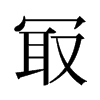 《集韻》《韻會》𠀤從遇切,音埾。《說文》冣从冖从取。積也。《徐曰》古以聚物之聚爲冣,上必有覆冒之也。今借作最,誤。