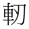 《廣韻》《集韻》《韻會》《正韻》𠀤而振切,音刃。《說文》礙車也。《徐曰》止輪之轉,其物名軔。