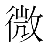 《唐韻》《集韻》《韻會》《正韻》𠀤無非切,音薇。《爾雅·釋詁》幽微也。《易·繫辭》知微知彰。《書·大禹謨》道心惟微。