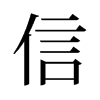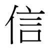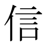 〔古文〕㐰䚱《唐韻》息晉切《集韻》《正韻》思晉切,𠀤音訊。愨也,不疑也,不差爽也。《易·繫辭》人之所助者,信也。《左傳·僖七年》守命共時之謂信。