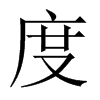 〔古文〕𡧪㡯《唐韻》《集韻》《韻會》徒故仍。《正韻》獨故切,𠀤音渡。《說文》法制也。从又,𢉙省聲。《徐曰》又,手也。布指知尺,舒肱知尋,故从手。《書·舜典》同律度量衡。《傳》度,丈尺也。《前漢·律歷志》度者,分寸尺丈引也,所以度長短也。本起於黃鐘之長,以子穀秬黍中者,一黍之廣,度之九十分,黃鐘之長,一爲一分,十分爲寸,十寸爲尺,十尺爲丈,十丈爲引,而五度審矣。