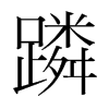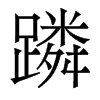 《唐韻》《集韻》《韻會》《正韻》𠀤良刃切,音吝。《說文》轢也。《類篇》行貌。或作躙。