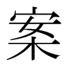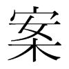 (案)几屬。考工記。玉人之事。案十有二寸。棗栗十有二列。大鄭云。案、玉案也。後鄭云。案、玉飾案也。棗栗實於器。乃加於案。戴先生云。案者、棜禁之屬。儀禮注曰。棜之制。上有四周。下無足。禮器注曰。禁、如今方案。隋長。局足。高三寸。此以案承棗栗。宜有四周。漢制小方案局足。此亦宜有足。按許云几屬、則有足明矣。今之上食木槃近似。惟無足耳。楚漢春秋。淮陰侯謝武涉。漢王賜臣玉案之食。後漢書梁鴻傳。妻爲具食。不敢於鴻前仰視。舉案齊睂。方言曰。案、陳楚宋魏之閒謂之?。自關而東謂之案。後世謂所凭之几爲案。古今之變也。從木。安聲。烏旰切。十四部。