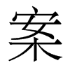 《唐韻》烏旰切《集韻》《韻會》於旰切《正韻》於幹切,𠀤音按。《說文》几屬。《徐曰》案,所凭也。《周禮·天官》王大旅上帝,則張氊案。朝日祀五帝,設重帟重案。