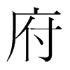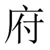 ),表示与房屋有关,付声。本义:府库,府藏。古时国家收藏文书或财物的地方)(2) 同本义