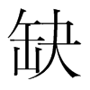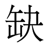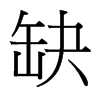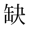 ),夬( )声。缶,瓦器。“夬”也有表意作用。水缺为“决”,玉缺为“玦”,器缺为“缺”,都有破损之意。本义:器具破损) 同本义。引申为缺漏而不完整缺,器破也。——《说文》