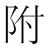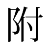 《廣韻》《集韻》《韻會》𠀤符遇切,音駙。《玉篇》依也,近也,著也。《廣韻》寄附。《集韻》托也。《易·剝卦》山附于地。《禮·樂記》附親萬民也。《周禮·地官·大司徒》其附于𠛬者,歸于士。《註》附,麗也。《孟子》附於諸侯曰附庸。