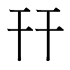 平也。象二干對構,上平也。凡幵之屬皆从幵。古賢切〖注〗徐鉉曰:“幵但象物平,無音義也。” 文一
