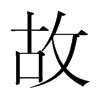 (12) 先,祖先 。如:故训(先代留下的法则。古训);故业(指祖上传下的基业);故家(世代仕宦之家;世家大族);故墓(祖先的墓地)