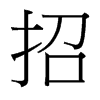 《唐韻》止遙切《集韻》《韻會》《正韻》之遙切,𠀤音昭。《說文》手呼也。《詩·邶風》招招舟子。《傳》招招,號召之貌。《疏》號召必手招之。王逸云:以手曰招,以口曰召也。