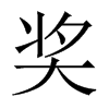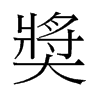 《廣韻》卽兩切,音槳。《玉篇》助也,成也,欲也,譽也,嗾犬厲之也。今作㢡。《廣韻》說文本作𤟌。《集韻》从大作奬。詳大部奬字註。