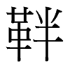 《廣韻》《集韻》《韻會》𠀤博漫切,音半。《玉篇》同絆。《廣韻》羈絆也。《集韻》駕牛具。在後曰絆。《釋名》靽,半也。拘使半行,不得自縱也。