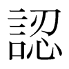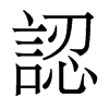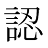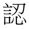 《唐韻》《集韻》《韻會》《正韻》𠀤而振切,音刃。《玉篇》識認也。《增韻》辨識也。《關尹子·二柱篇》渾人我同天地,而彼私智認而已之。《後漢·卓茂傳》時嘗出行,有人認其馬,解與之,他日別得,亡者詣府送還。《元史·王克敬傳》臨事不認眞,豈盡忠之道乎。