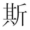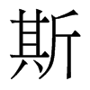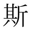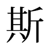 〔古文〕𣂕《廣韻》息移切《集韻》《韻會》相支切,𠀤音私。《說文》析也。《爾雅·釋言》斯,離也。《註》齊𨻰曰斯。《詩·𨻰風》墓門有棘,斧以斯之。《箋》維斧可以開析之。《呂覽·報更篇》趙宣孟見桑下餓人,與之脯一朐,曰斯食之。《註》斯,析也。