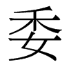 又《廣韻》於爲切《集韻》邕危切,𠀤音逶。雍容自得之貌。《詩·召南》委蛇委蛇。《鄘風》委委佗佗。《說文》委,隨也。从女从禾。《徐鉉曰》曲也。从禾垂穗,委曲之貌。