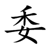 (13) 随顺,顺从 。如:委贽(指人臣拜见君主时,屈膝委体于地);委化(随任自然的变化);委分(任凭天命);委质(下拜;屈膝委身于地下,后引申为托身;归顺。质:形体);委制(归顺并接受约束);委和(随顺自然);委面(归顺称臣);委从(随顺,顺从)