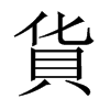 貨【酉集中】【貝部】 康熙筆画:11画,部外筆画:4画
