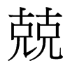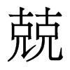 (𠓆)競也。競者、彊語也。小雅無羊傳曰。矝矝兢兢、以言堅彊也。釋文此義其冰反。从二兄。會意。二兄、競意。說從二兄之意。从丯聲。丯讀若介。此取雙聲也。二丯皆聲也。讀若矝。居陵切。六部。漢時矝讀如今韵矣。一曰兢、此複舉兢字。各本誤作競。今依葉抄本。集韵、類篇無此字。敬也。小雅。戰戰兢兢。傳曰。戰戰、恐也。兢兢、戒也。小徐本無此五字。玉篇引亦無。