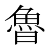 〔古文〕𣥐《廣韻》《正韻》郞古切《集韻》《韻會》籠五切,𠀤音虜。《說文》鈍詞也。《論語》參也魯。《何晏註》魯,鈍也。曾子性遲鈍。