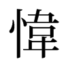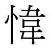 《廣韻》于鬼切《集韻》羽鬼切,𠀤音偉。恨也。《班固·幽通賦》豈不餘身之足殉,愇世業之可懷。通作韙。
